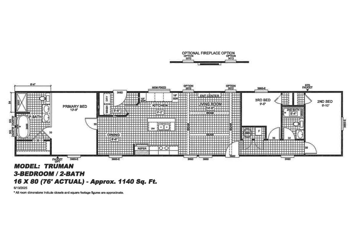 3 Beds | 2.00 Baths | 1140 sq. ft. | 16' 0" x 80' 0" | Serial #: